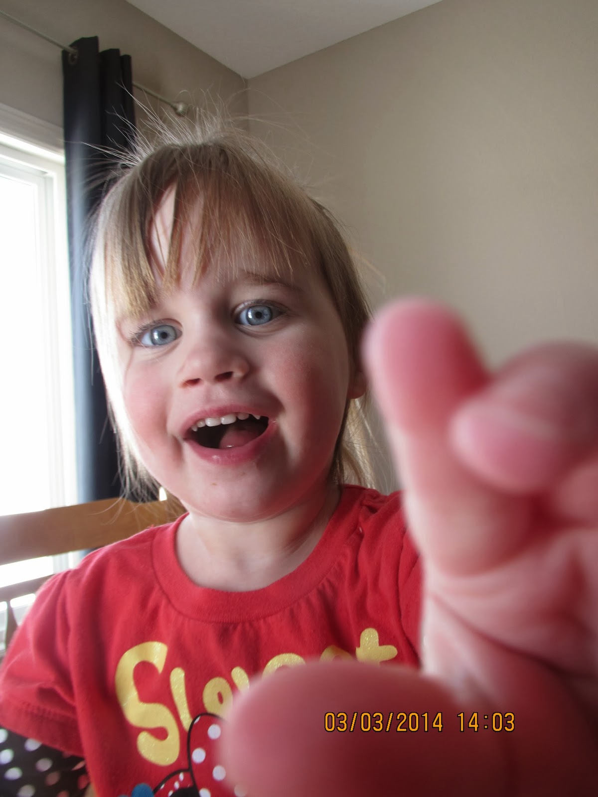 - Bath time at night was a TOTAL success. She got out 3 times to go potty on the potty chair instead of in the bath. (This from the girl who used to regularly poop in the tub is a HUGE success.) However, this incident did end with a reward sucker in my hair that she happened to be eating in the bath tub. Don't ask.